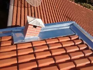 O rufo de encosto é aplicado no encontro entre a alvenaria e o telhado.